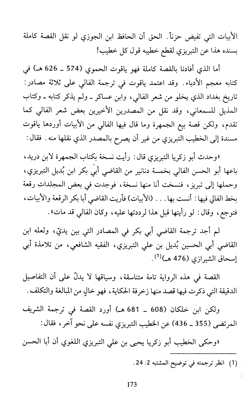 "وحكى الخطيب أبو زكريا يحيى بن علي التبريزي اللغوي أن أبا الحسن