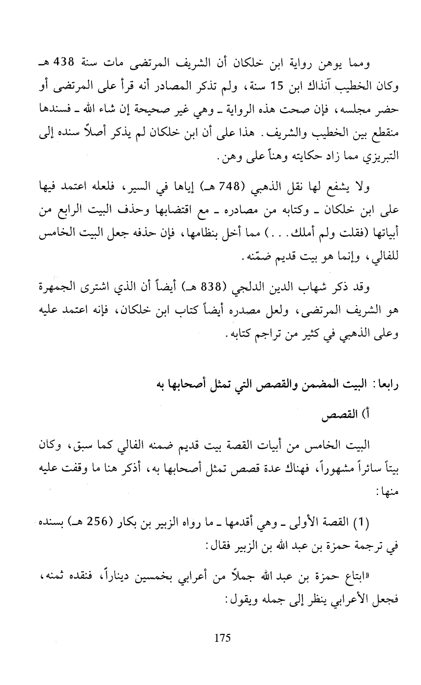 ولا يشفع لها نقل الذهبي (748 هـ) إياها في السير، فلعله اعتمد فيها على ابن خلكان - وكتابه من مصادره - مع اقتضابها وحذف البيت الرابع من أبياتها (فقلت ولم أملك ... ) مما أخل بنظامها، فإن حذفه جعل البيت الخامس للفالي، وإنما هو بيت قديم ضمّنه.
