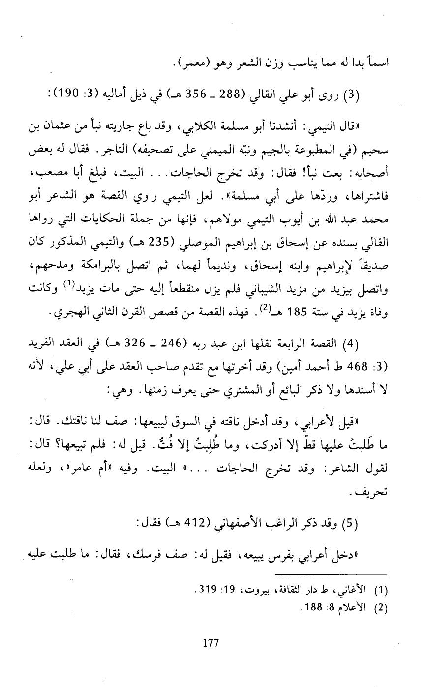 (3) روى أبو علي القالي (288 - 356 هـ) في ذيل أماليه (3: 190):