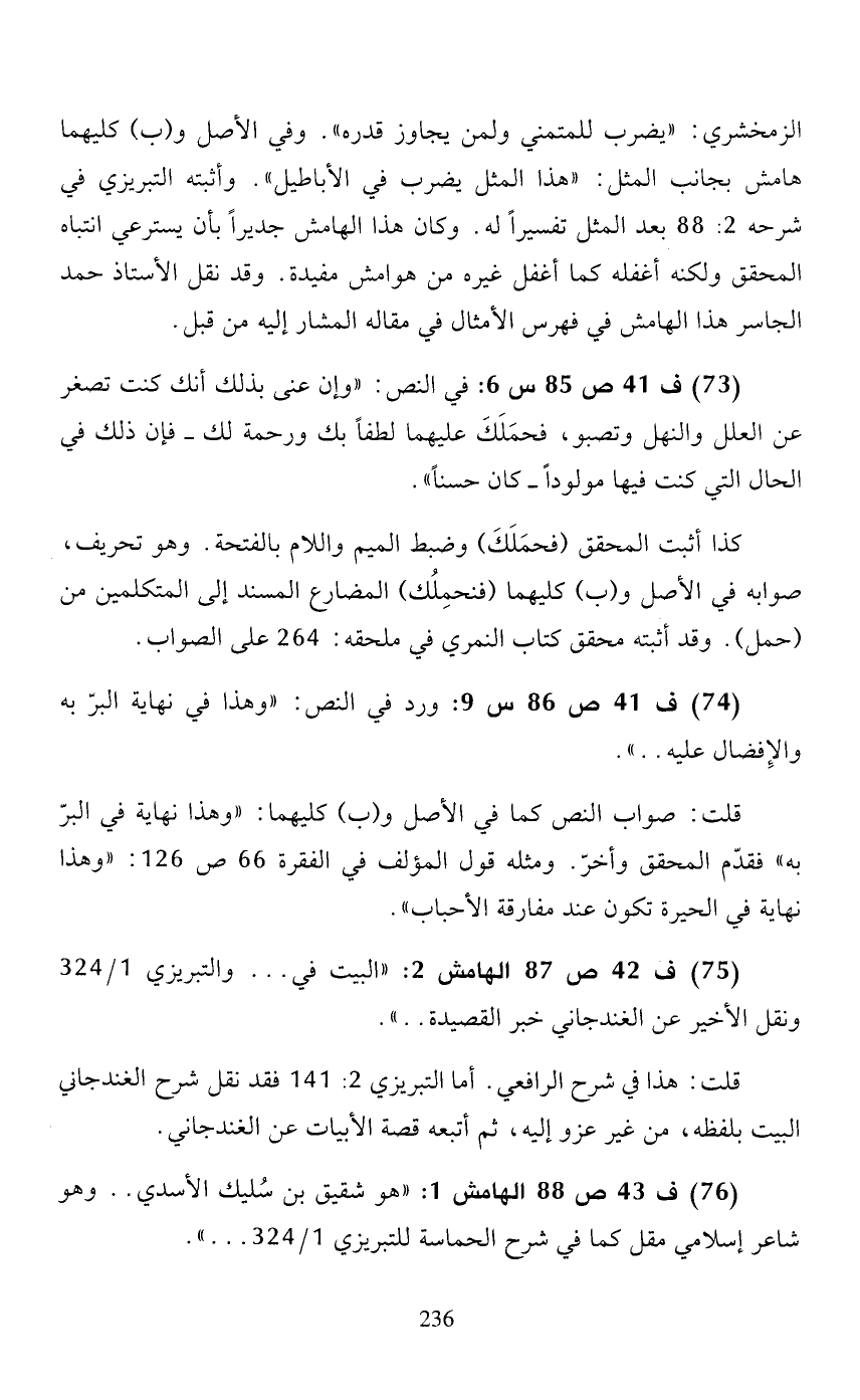 (74) ف 41 ص 86 س 9: ورد في النص: "وهذا في نهاية البرّ به والإفضال عليه .... ".