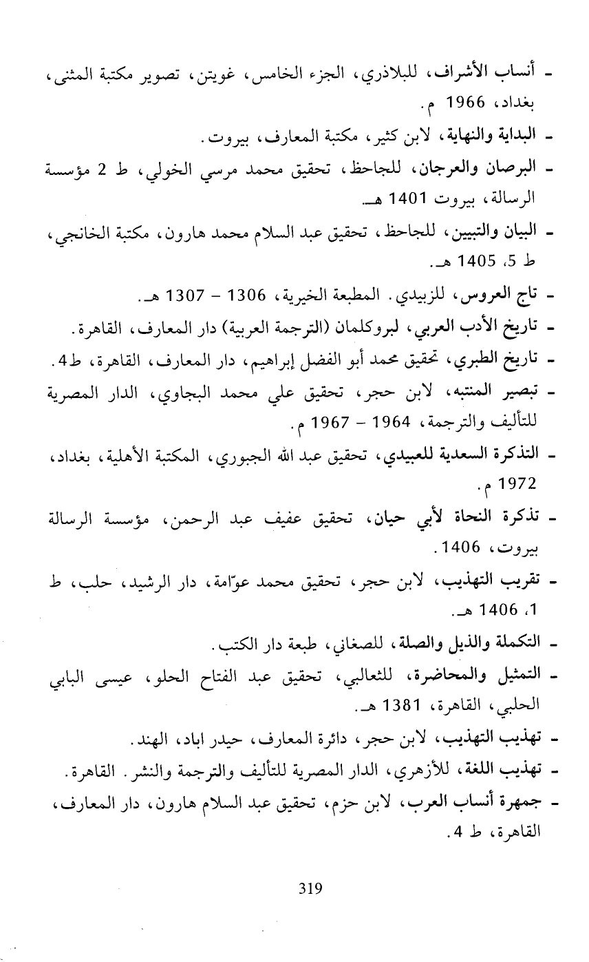 - تاريخ الأدب العربي، لبروكلمان (الترجمة العربية) دار المعارف، القاهرة.