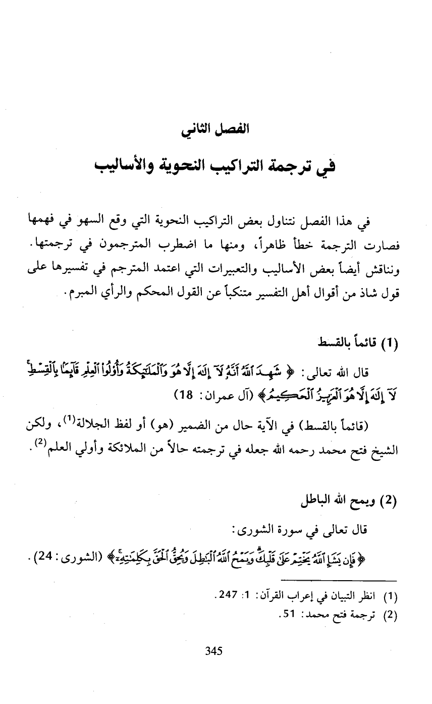 في هذا الفصل نتناول بعض التراكيب النحوية التي وقع السهو في فهمها فصارت الترجمة خطأ ظاهرًا، ومنها ما اضطرب المترجمون في ترجمتها.