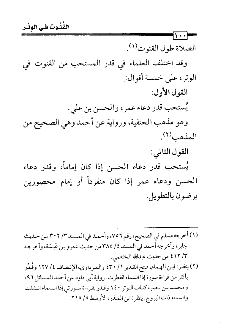 (¬2) ينظر: ابن الهمام، فتح القدير (1/ 430)، والمرداوي، الإنصاف (4/ 127) وقُدِّر بأكثر من قراءة سورة إذا السماء انفطرت. رواية أبي داود عن أحمد المسائل (96)، ومحمد بن نصر، كتاب الوتر (140) وقدر بقراءة سورتي إذا السماء انشقت والسماء ذات البروج. ينظر: ابن المنذر، الأوسط (5/ 215).