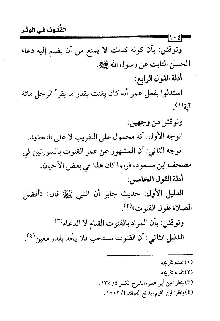 ونوقش: بأن المراد بالقنوت القيام لا الدعاء (¬3).
