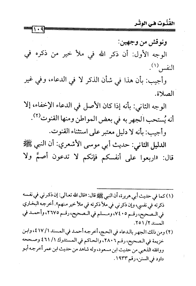 الوجه الثاني: بأنه إذا كان الأصل في الدعاء الإخفاء، إلا أنه يستحب الجهر به في بعض المواطن ومنها القنوت (¬2).