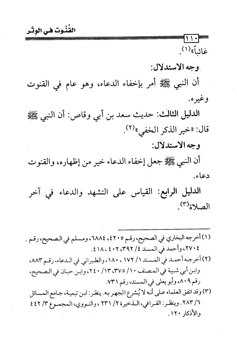 أن النبي - صلى الله عليه وسلم - أمر بإخفاء الدعاء، وهو عام في القنوت وغيره.