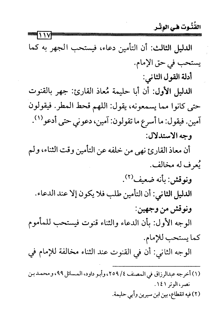 (¬1) أخرجه عبد الرزاق في المصنف (4/ 259)، وأبو داود، المسائل (99)، ومحمد بن نصر، الوتر (141).