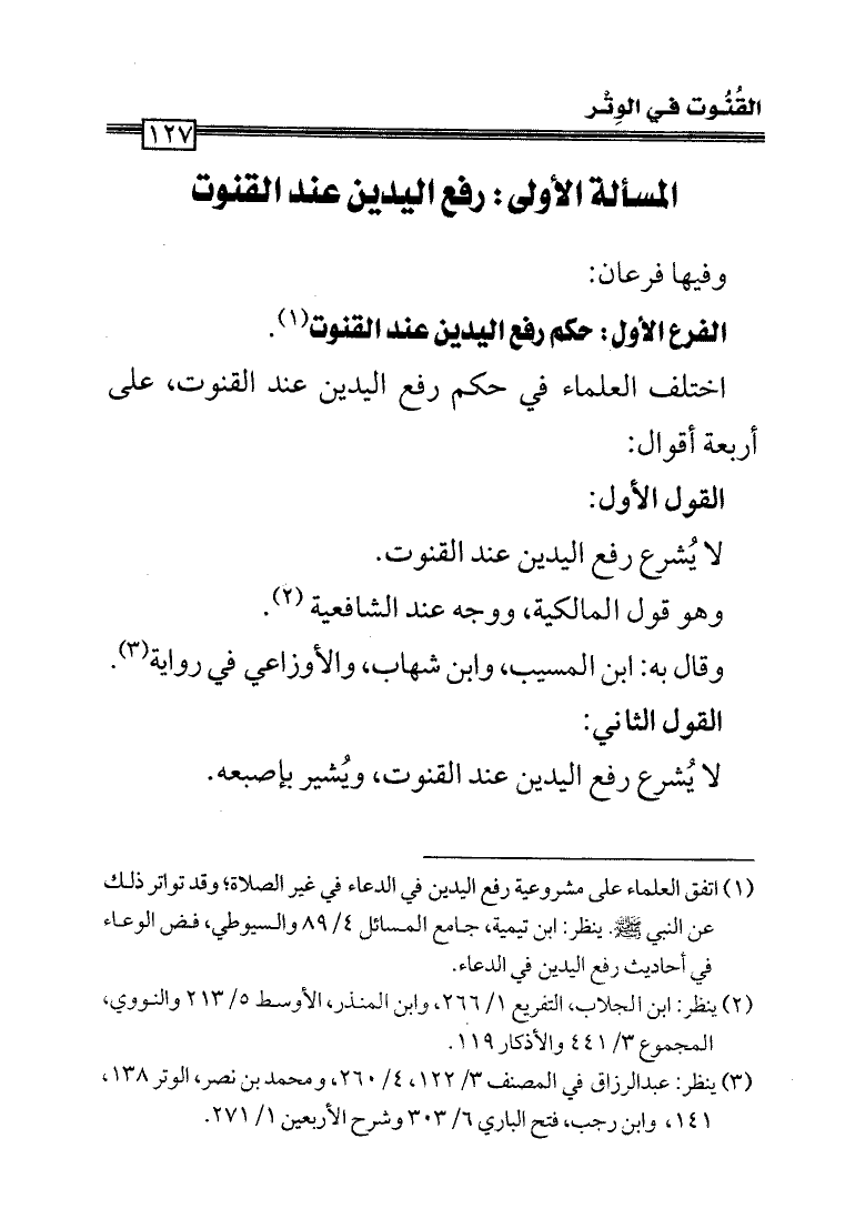 الفرع الأول: حكم رفع اليدين عند القنوت (¬1).