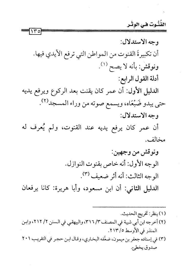 الدليل الأول: أن عمر كان يقنت بعد الركوع ويرفع يديه حتى يبدو ضَبْعَاه، ويسمع صوته من وراء المسجد (¬2).