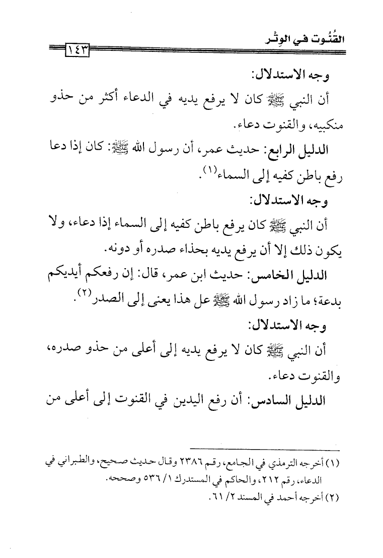 الدليل السادس: أن رفع اليدين في القنوت إلى أعلى من