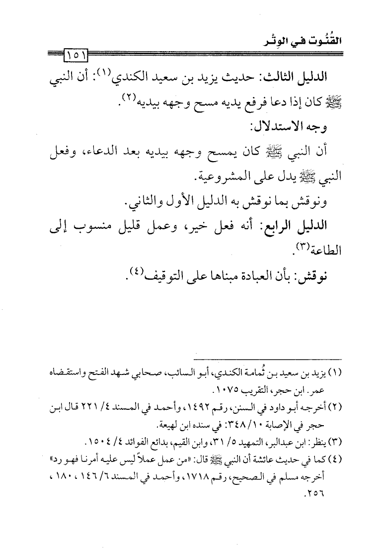 الدليل الثالث: حديث يزيد بن سعيد الكندي (¬1): أن النبي - صلى الله عليه وسلم - كان إذا دعا فرفع يديه مسح وجهه بيديه (¬2).