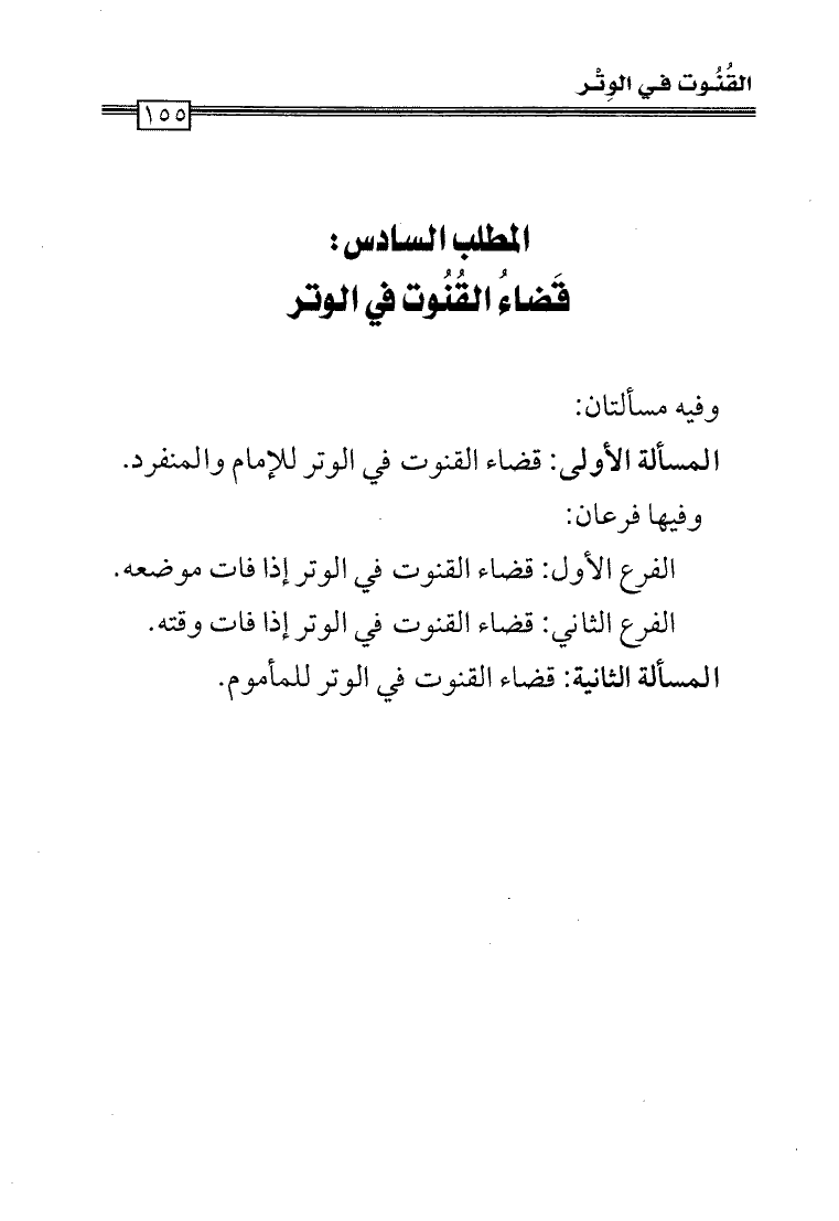 المسألة الأولى: قضاء القنوت في الوتر للإمام والمنفرد.