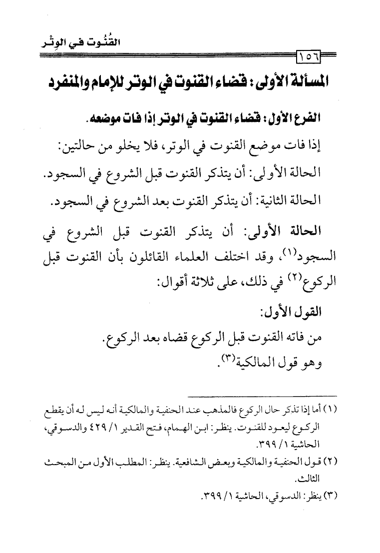 (¬1) أما إذا تذكر حال الركوع فالمذهب عند الحنفية والمالكية أنه ليس له أن يقطع الركوع ليعود للقنوت. ينظر: ابن الهمام، فتح القدير (1/ 429)، والدسوقي، الحاشية (1/ 399).