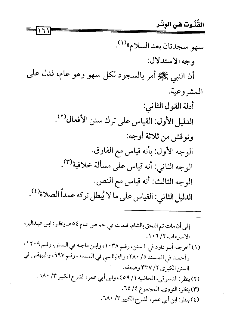 الدليل الأول: القياس على ترك سنن الأفعال (¬2).