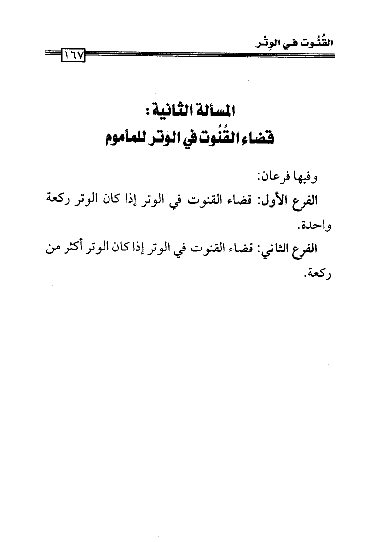 الفرع الثاني: قضاء القنوت في الوتر إذا كان الوتر أكثر من ركعة.