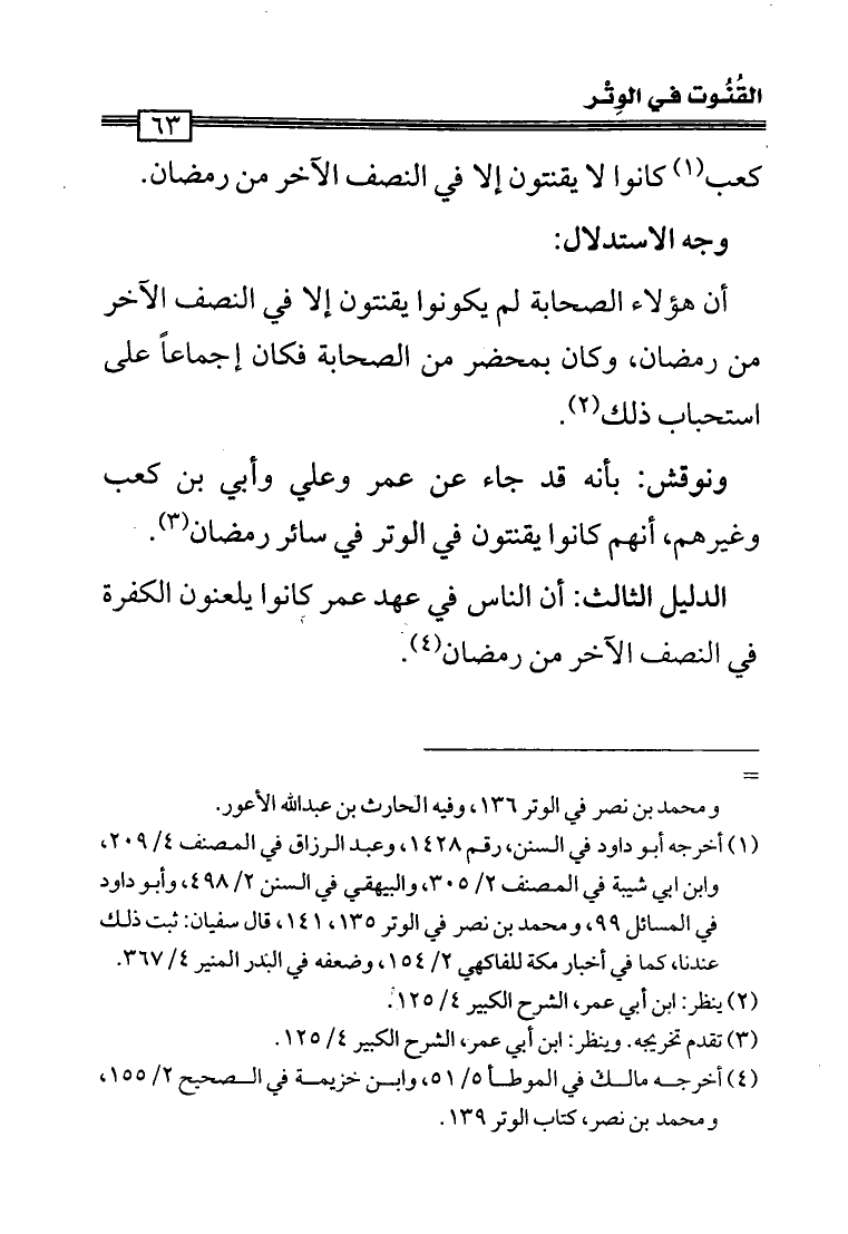 (¬4) أخرجه مالك في الموطأ (5/ 51)، وابن خزيمة في الصحيح (2/ 155)، ومحمد بن نصر، كتاب الوتر (139).