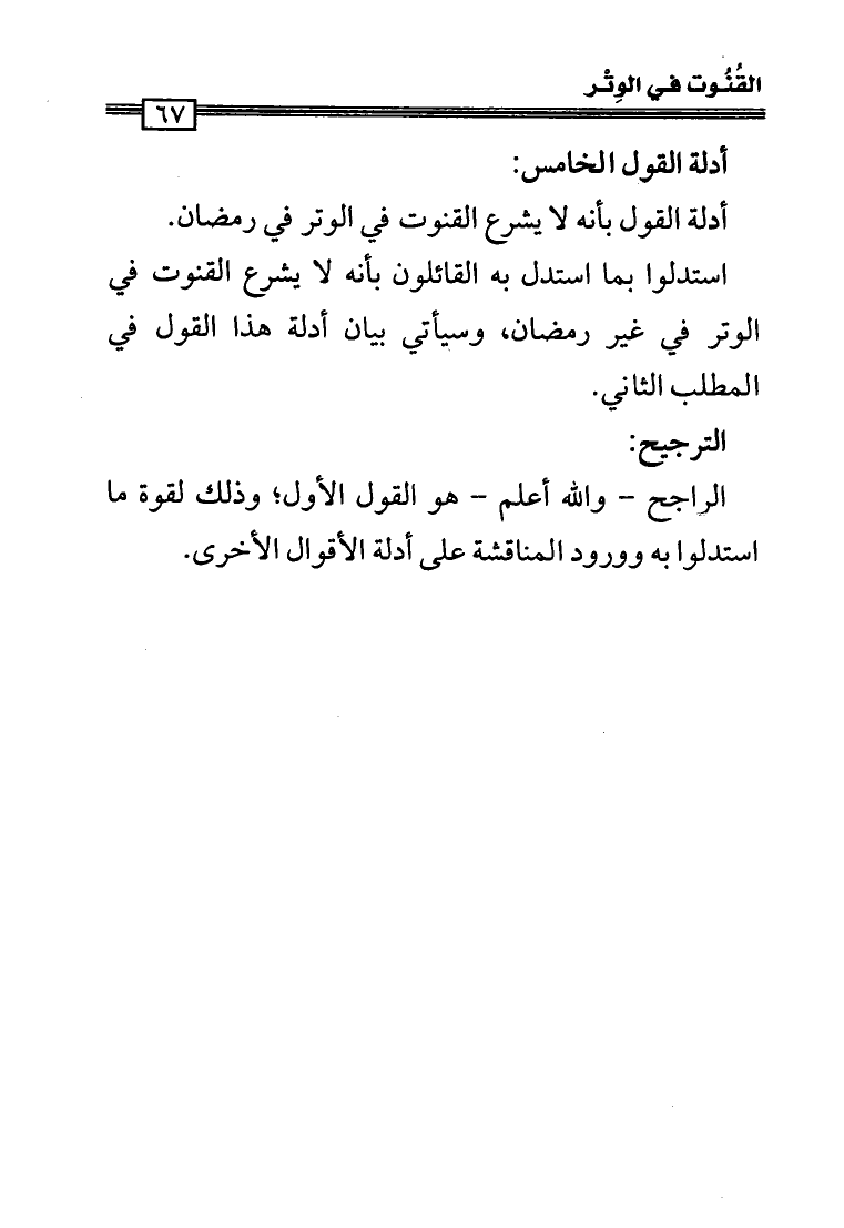 أدلة القول بأنه لا يشرع القنوت في الوتر في رمضان.