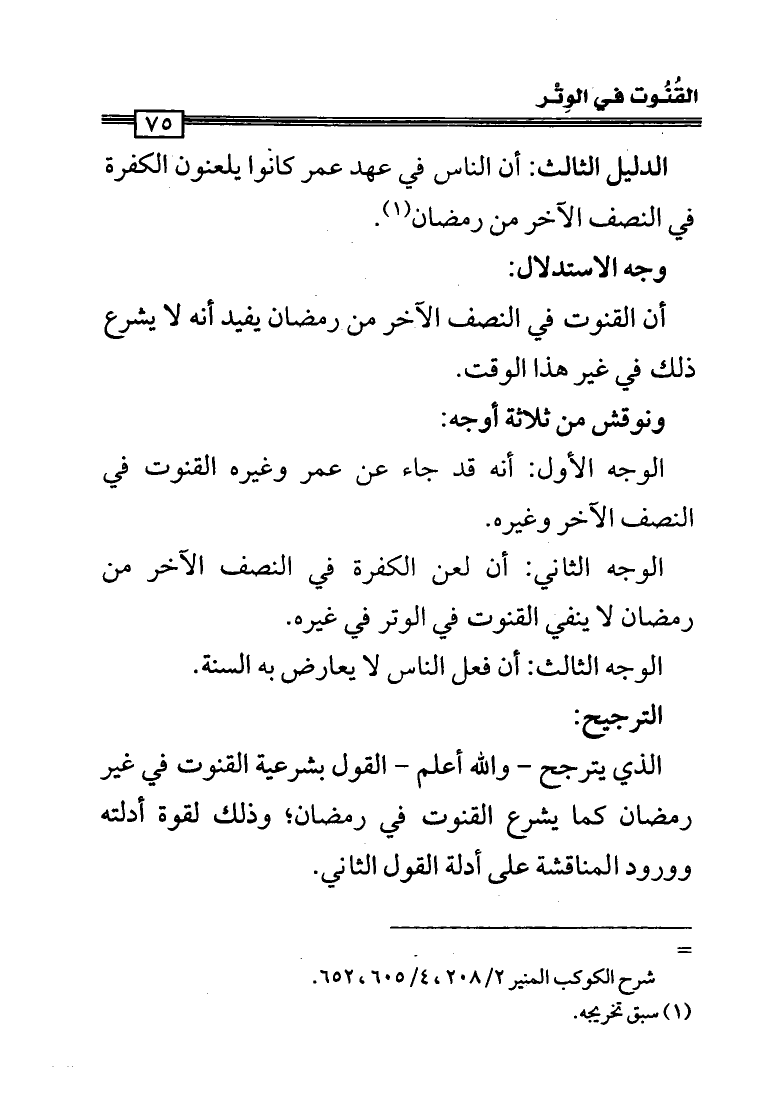 الدليل الثالث: أن الناس في عهد عمر كانوا يلعنون الكفرة في النصف الآخر من رمضان (¬1).