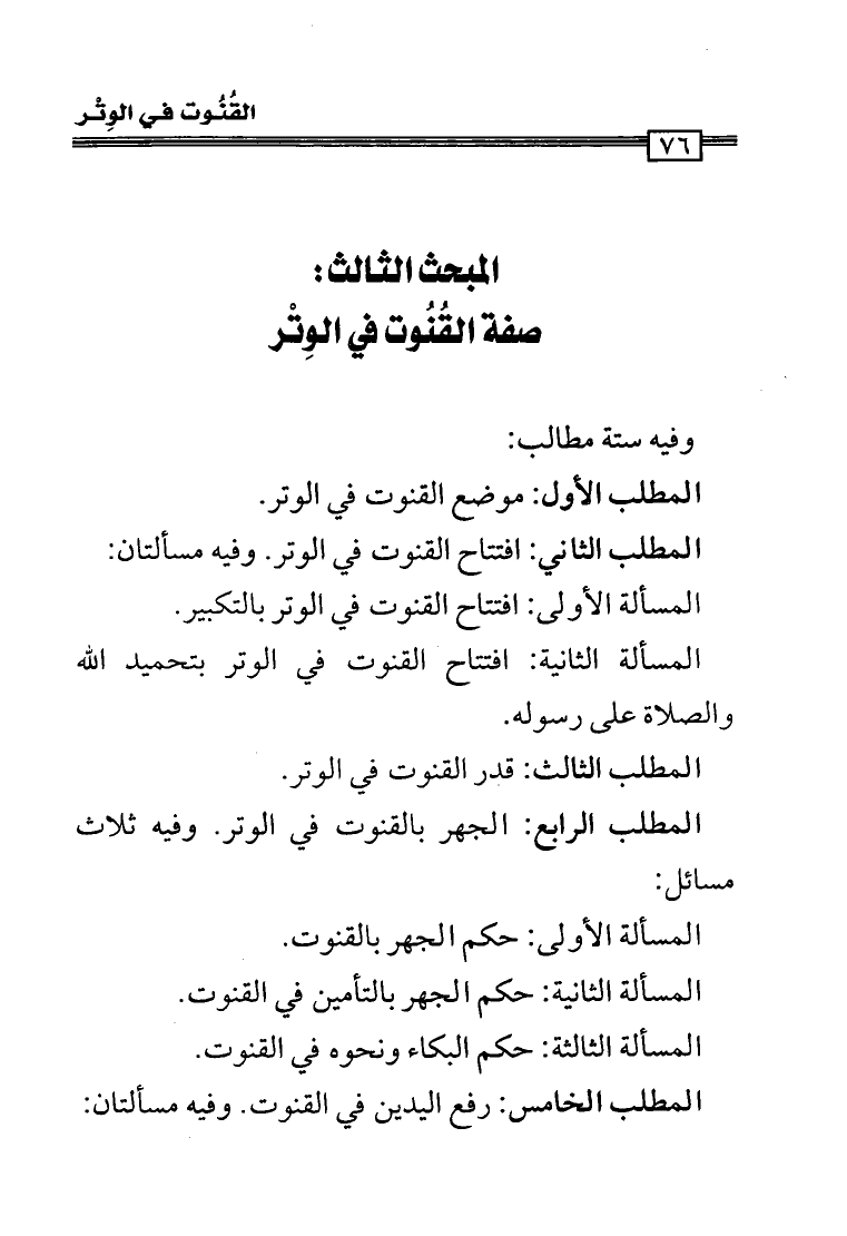 المطلب الرابع: الجهر بالقنوت في الوتر. وفيه ثلاث مسائل: