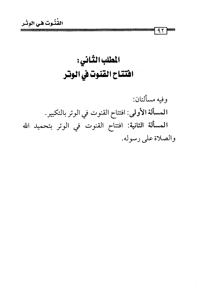 المسألة الثانية: افتتاح القنوت في الوتر بتحميد الله والصلاة على رسوله.
