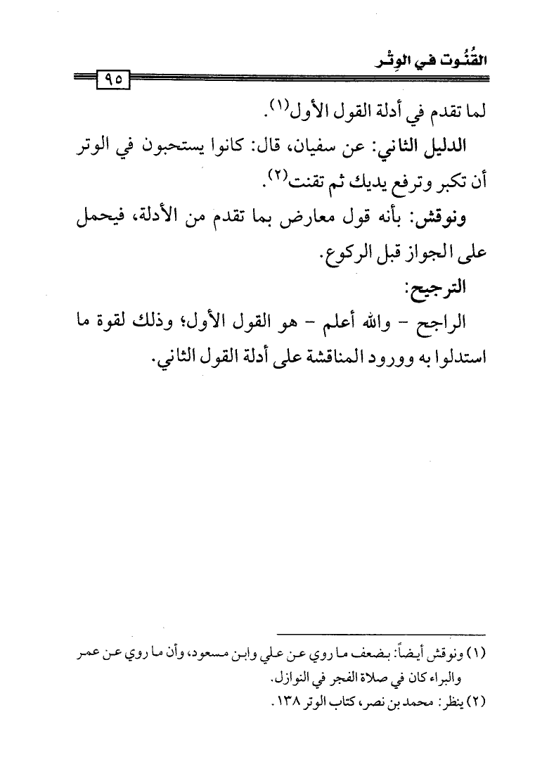 (¬2) ينظر: محمد بن نصر، كتاب الوتر (138).
