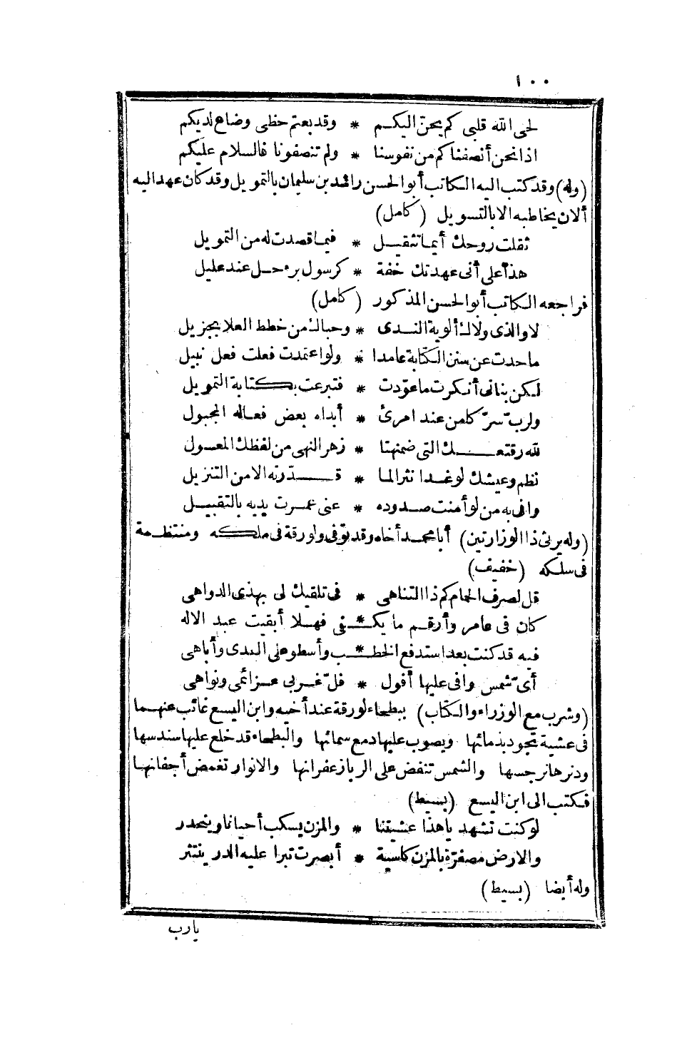 وله بعد ما نقل عن ملكه، وأخذ سلطانه من ملكه، يحن إلى لياليه السالفة، وظلال أنسه الورافة ويتذكر لذته، وينكر أطراح الزمان له ونبذته: بسيط