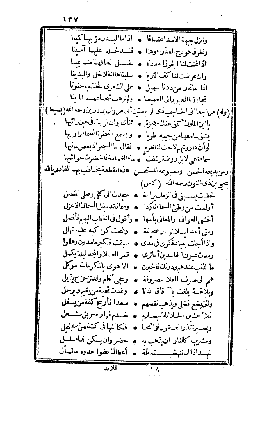 ومن بديعه الحسن، ومطبوعه المستحسن، هذه القطعة يخاطب بها القادر بالله يحيى ابن ذي النون رحمه الله، كامل
