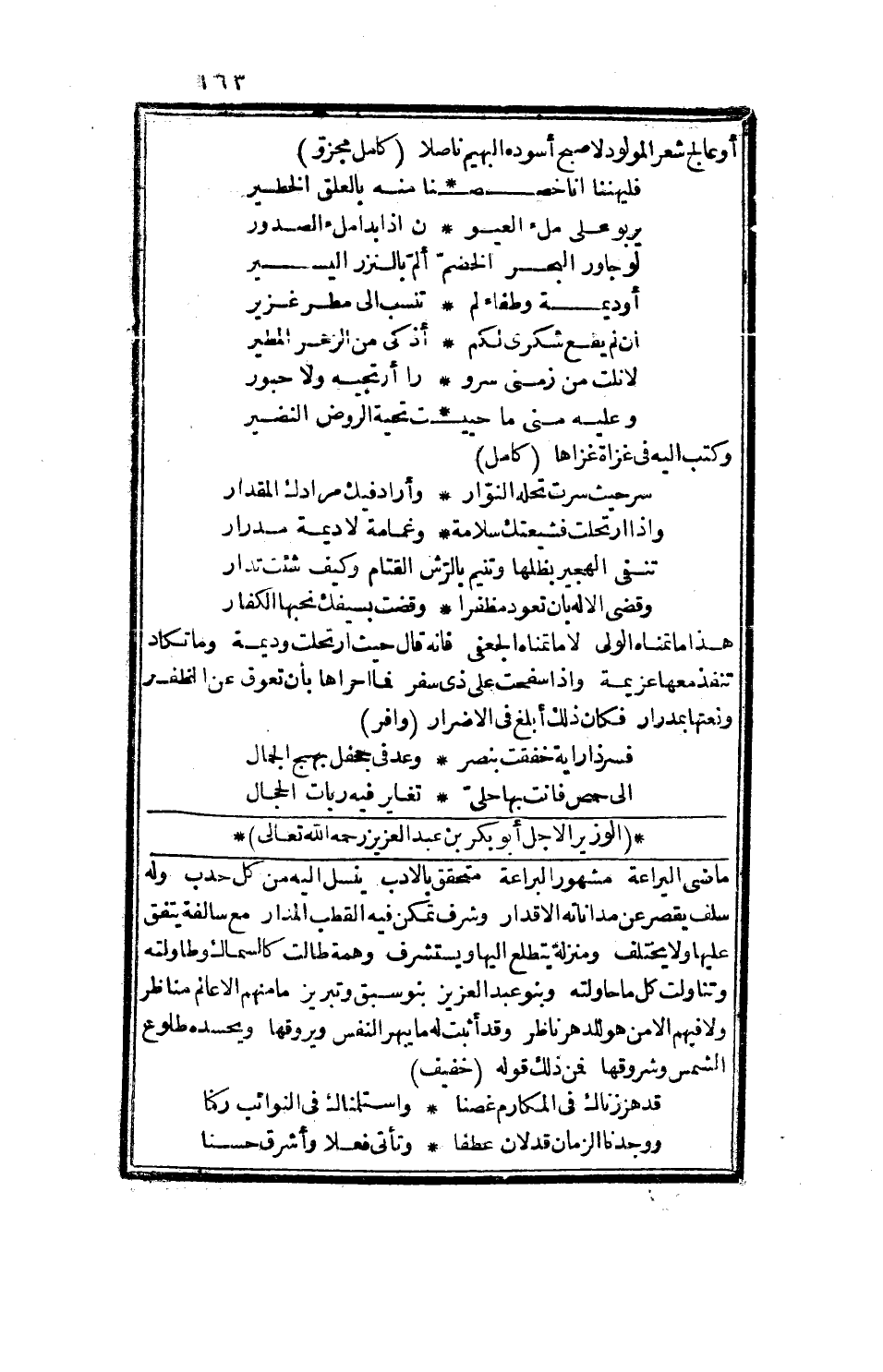 فسمح الله مدته، وجازى مودته، وأعلى رتبته، وأحسن في كل حال وترحال صبحته، ولا رب سواه، وكتب إليه مسلياً عن نكبته، الوزير الفقيه أدام الله عزه، وكفاه ما عزه، أعلم بأحكام الزمان من أن يرفع إليها طرفا، وينكر لها صرفا، ويطلب في مشارعها مشربا زلالا أو صرفا، فشهدها مشوب وروضها مكمن لكل صل أرقم، وما فجئته أعزه الله الحوادث بنكبة، ولا حطته النائبات عن رتبة، ولا كانت الأيام قبل رفعته بوزارة ولا كتبه، فهو المر يرفعه دينه ولبه، وينفعه لسانه وقلبه، ويشفع له علمه وحسبه، وتسمو به همته وأدبه، ويعنو بين يديه شانيه وحاسك، ويثبت في أرض الكرم حين يريد أن يجتثه حاصك، ويفديه بالفضل من لا يوده، وينصره الله بإخلاصه حين لا ينصره سواعه ولا ودة. طويل
