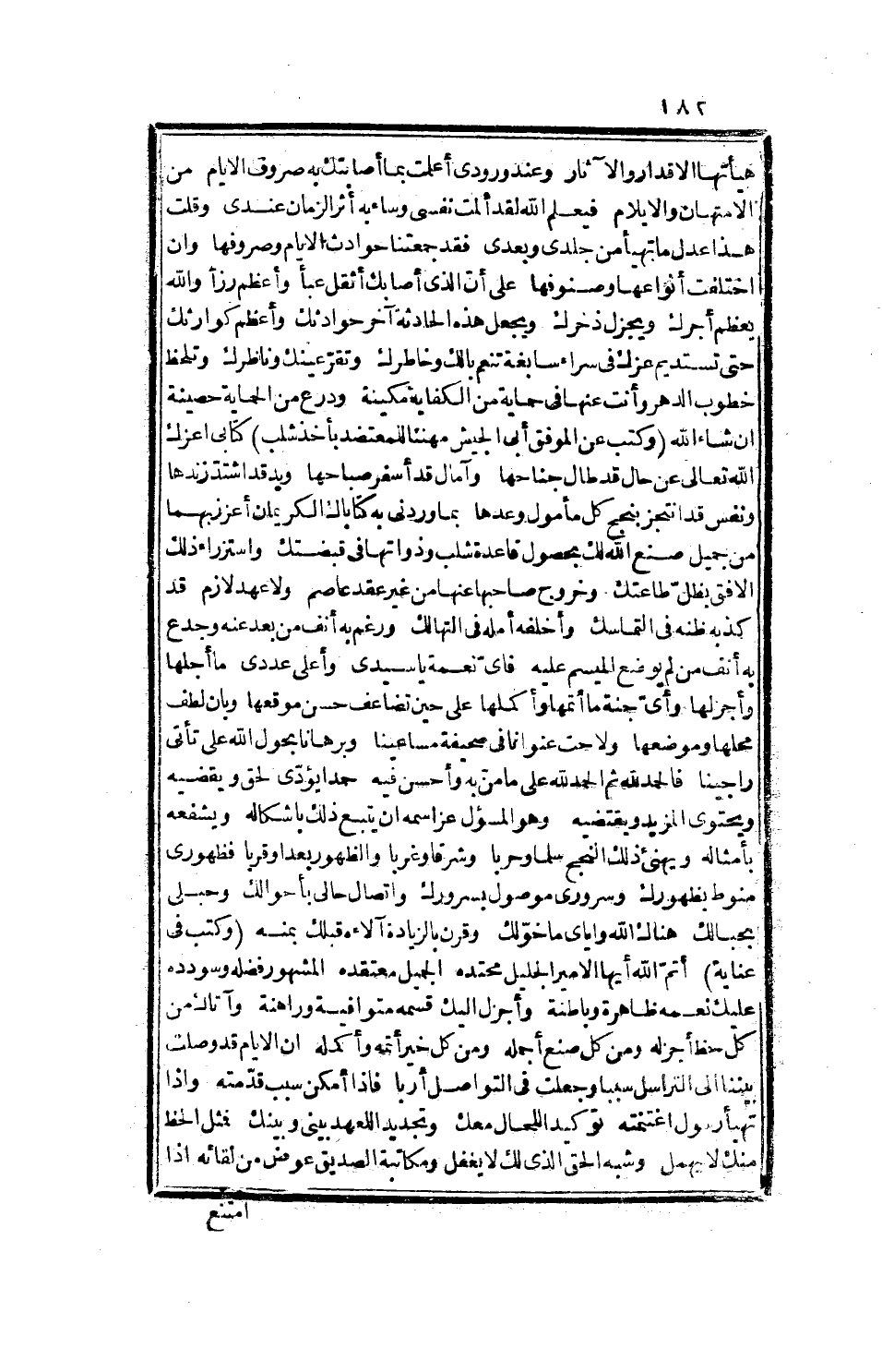 بالإكرام، وقد استضاف إلى هذه الحقوق التي مثلها رعي، وشبهها قضي انه ضيف لي، وأثر ما عندي، اختصه بأتم العناية، واعتمده بإحمد الرعاية، وأشفع له الشفاعة الحسنة، واستظهر له المعونة التامة والمشاركة البينة، وأنت بفضلك تلقى أمله بالتحقيق، ورجاءه بالتصديق، وتصل فضلك عليه حتى يكون قليبا يروي وسقاء يشفي ووردا ينهل، وسبباً يتصل، أن شاء الله عز وجل.