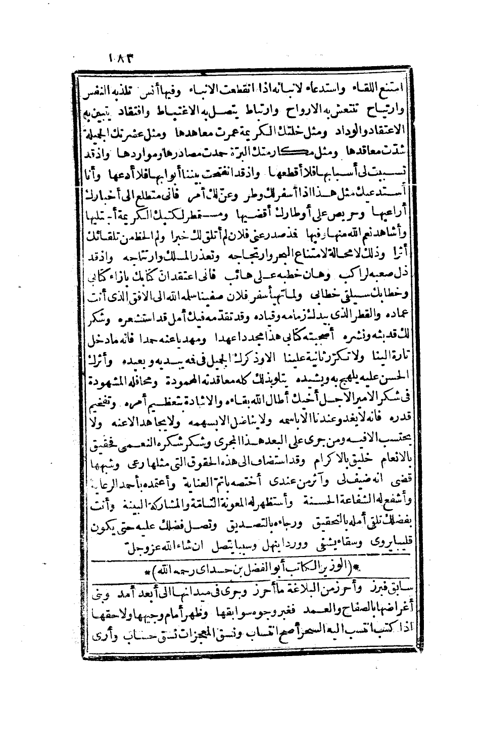 فتطهر من تلك السمة، واستظهر بعقيدته التي قيدت في ديوان الحق مرتسمة، وبدت محاسنه سافرة القناع، كافرة بذلك الدين الذي عدل بها من الإقناع، وقد أثبت له من ذلك مالا يرجى له لحاق، ولا يغشي تمامه محاق، فمنها هذه القطعة التي أطلعها نيرة، وترك الأباب بها متحيرة، في يوم كان عند المقتدر بالله مع علية، قد اتخذوا المجد حلية، والأمل قد سفر لهم عن محياة، وعبق لهم رياه، فصافحه الكل منهم وحياه، وشمس الراح، دائرة على فلك الراح، والملك ينشر فضله، وينثر وأبله وطله، يسدي العلاء، ويهب الغنا والغناء، فصدحت الغواني، وأفصحت المثالث والمثاني، بما استنزل من موقف الوقار، وسرى في النفوس مسرى العقار. بسيط