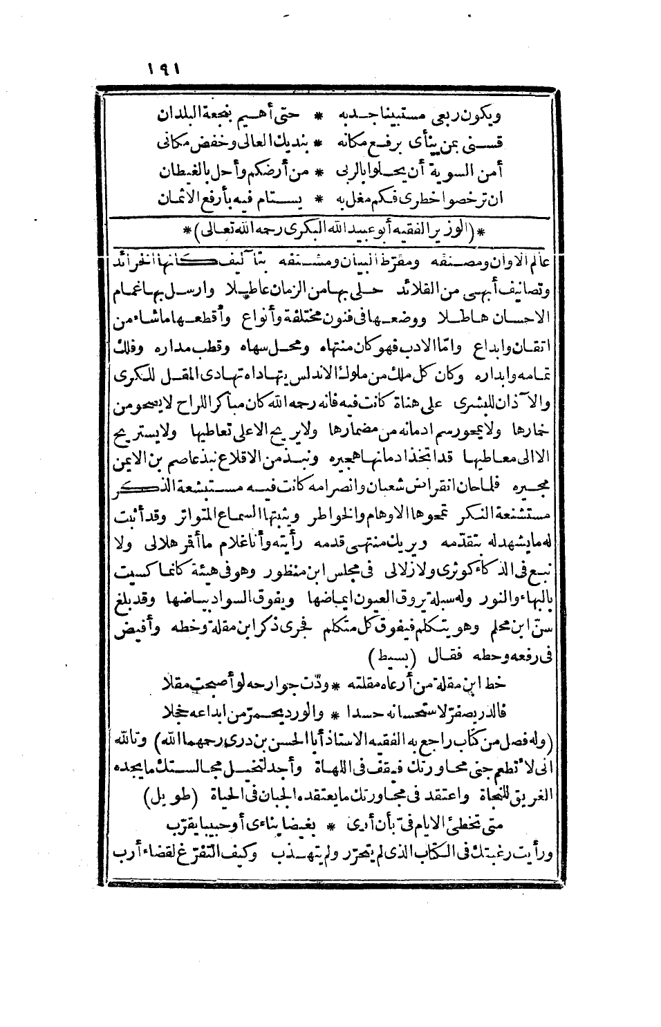 حامي ذمار الدين، وعاضده وقاطع ضرر المعتدين، وخاضده ملك للعلوم زماماً، وجعل العكوف عليها لزاما، فحيى رسمها، وأعلى اسمها، وخاصمت الملحدين منه السن لد، وتهدلت به على العالمين أغضن ملد، وكف أيدي الظالمين فلم تكن لهم استطالة، وأرهف خواطر المجتهدين فلم تستح لهم بطاله، فأصبح أهل مصره بين دارس علم، ولابس حلم، وآيس ظلم، ناهيك من رجل كثير الرعي لأهل المعارف، مؤو من بره إلى ظل وارف، أعم الورى منة، وأعظم خلق الله منة، أقام واقعد، وأدنى وأبعد، وانحس وأسعد، فتقلصت به الظلال وفاءت وحسنت به الأيام وساءت وأعمل للضر والنفع لسانه ويده، وشغل بالرفع والوضع يومه وغده، وعمر بهما فكره وخلده، حتى هد الجبال الشوامخ، واجتث الأصول الرواسخ، ولما أدار ابن الحاج من خلاف سنة تسع وتسعين ما أدار، واتفق هو ومن واطاه على ما فسخته الأقدار، استشير في الخلع فما استساغه، وريع حيره فلم يكن فمن راعبه، وعرض على الحمام فما هابه، ووالي في نقض ما أبرم جيئانه وذهابه، وسمح في ذلك بنفسه، وقنع من غده بذكر أمسه، فلما انجلت ظلماؤه، وتحلت بنجوم ظفره سماؤه، أغرى بالمطالبين اهتضامه، وحيفه وأعلن لمن أسر أغراءه ولم ينظر بالمكروه نظراءه، فأخمل منهم أعلاما، وأورث نفس الدين منهم ألاما، وألبسهم ما شاء ذما من الناس وملاما، فدجت مطالع شموسهم وخلت مواضع تدريسهم، فأصبحوا ملتحفين بالمهانة، متشوفين إلى الإهانة، يروعهم الرواح والغدو، ويحسبون كل صيحة عليهم هو العدو، ويذعرهم طروق النوم للأجفان، وينكرهم الثابت العرفان، قد فقدوا حبورا، وعات منازلهم قبورا، إلى أن نفس مخنقهم بعد أحوال، وخلا أفقهم من تلك الأهوال، فتنشقوا ريح الحيوة، وأشرقوا من تلك الظلمات، بعد أن أحال البوس نعيمهم، واخذ الحمام زعيمهم، وكان رحمه الله متضح طريق الهدى، منفسح الميدان في العلم