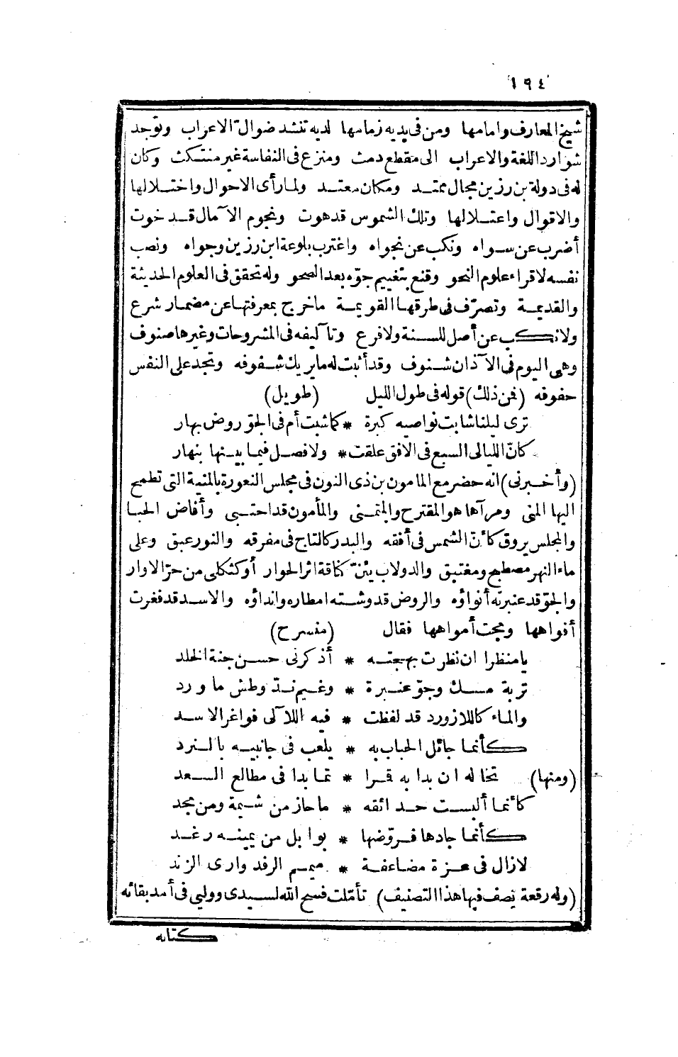 الغاية شفوفاً، ولا برح مكانك بالآمال محفوفاً، بعزة الله، وله يراجع الأستاذ أبا محمد بن جوشن على شعر كتب به إليه وتضمن غزلاً في أول القصيدة فحذا حذوه: طويل