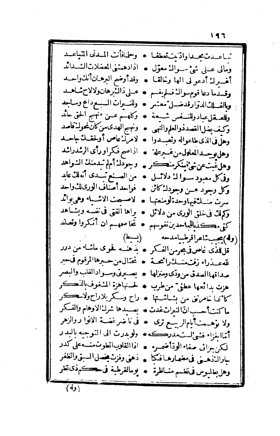 وكتب إلى الأستاذ أبي الحسن بن الأخضر رحمه الله، يا سيدي الأعلى، وعمادي الأسنى، وحسنة الدهر الحسنى، الذي جل قدره، وسار مسير الشمس ذكره، ومن أطال بقاءه لفضل يعلي مناره، وعلم يحيى أثاره، نحن أعزك الله نتدانى أخلاصا، وان نتناءى أشخاصا، وأن فرقنا النسب، فالأشكال أقارب، والآداب مناسب، وليس يضر تناءى الأشباح، إذا تقاربت الأرواح، وما مثلنا في هذا الانتظام، إلا كما قال أبو تمام. طويل
