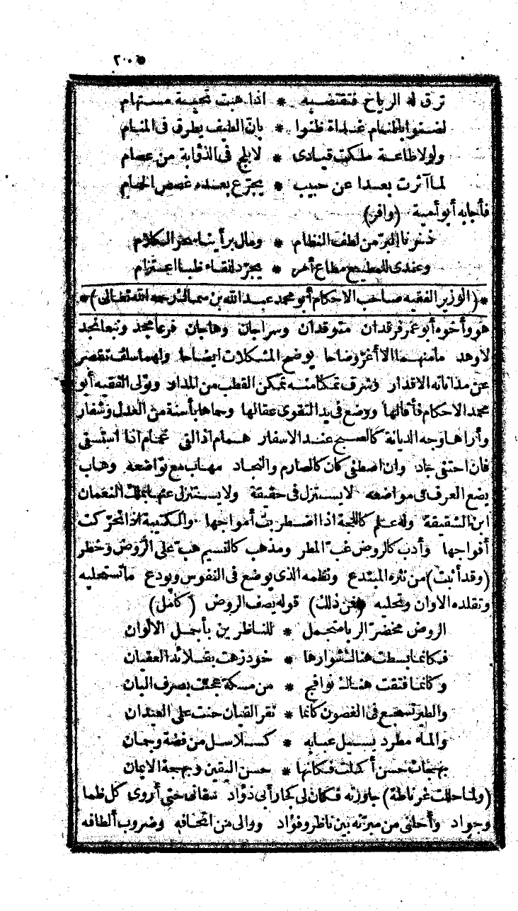 لا غرو أعزك الله من تقصير، فالكل في ميدانك قصي، ولكنها صبابة من نهرك، وثمد من بحرك، أخرجها صميم ودك، وأبرزها صريح عقدك، ومذلك طوى عليها كشحا، وأعرض عن صفحاتها صفحا، وقبلها من باب الصفا، وحنا عليها من جانب الإخاء، واتلله تعالى يبقيك ويبارك للأخوان فيك، بقدرته وعزته.