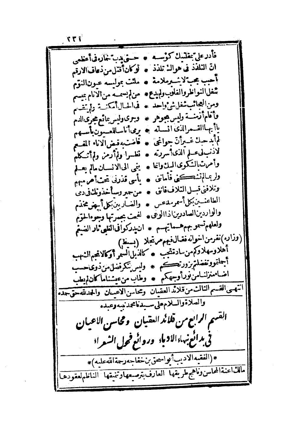 للمحلق، ولا حسان لأهل جلق، وإن تصرف في فنون الأوصاف، فهو فيها كفارس خصاف، وكان في شبيبته مخلوع الرسن، في ميدان مجونه، كثير الوسن، بين صفا الانتهاك وحجونه، لا يبالي بمن التبس، ولا أي نار اقتبس، إلا أنه قد نسك اليوم نسك ابن أذينة، وغض عن إرسال نظرة في أعقاب الهوى عينه، وقد أثبت له ما يقف عليه اللواء، وتصرف غليه الأهواء، أخبرني إنه لما أقلع عن صبوته، وطلع ثنيه سلوته، والكهولة قد حنكته، وأسلكته من طرق الأرعواء حيث اسلكته، نام فرأى أنه مستيقظ وجعل يفكر فيما مضى من شبابه، وفي من ذهب من أحبابه، ويبكي على أيام لهوه، وأوان غفلته وسهوه، ويتوجع لسالف ذلك الزمان، ويتبع الذكر دمعاً كواهي الجمان، ثم استيقظ وهو يقول، [وافر]