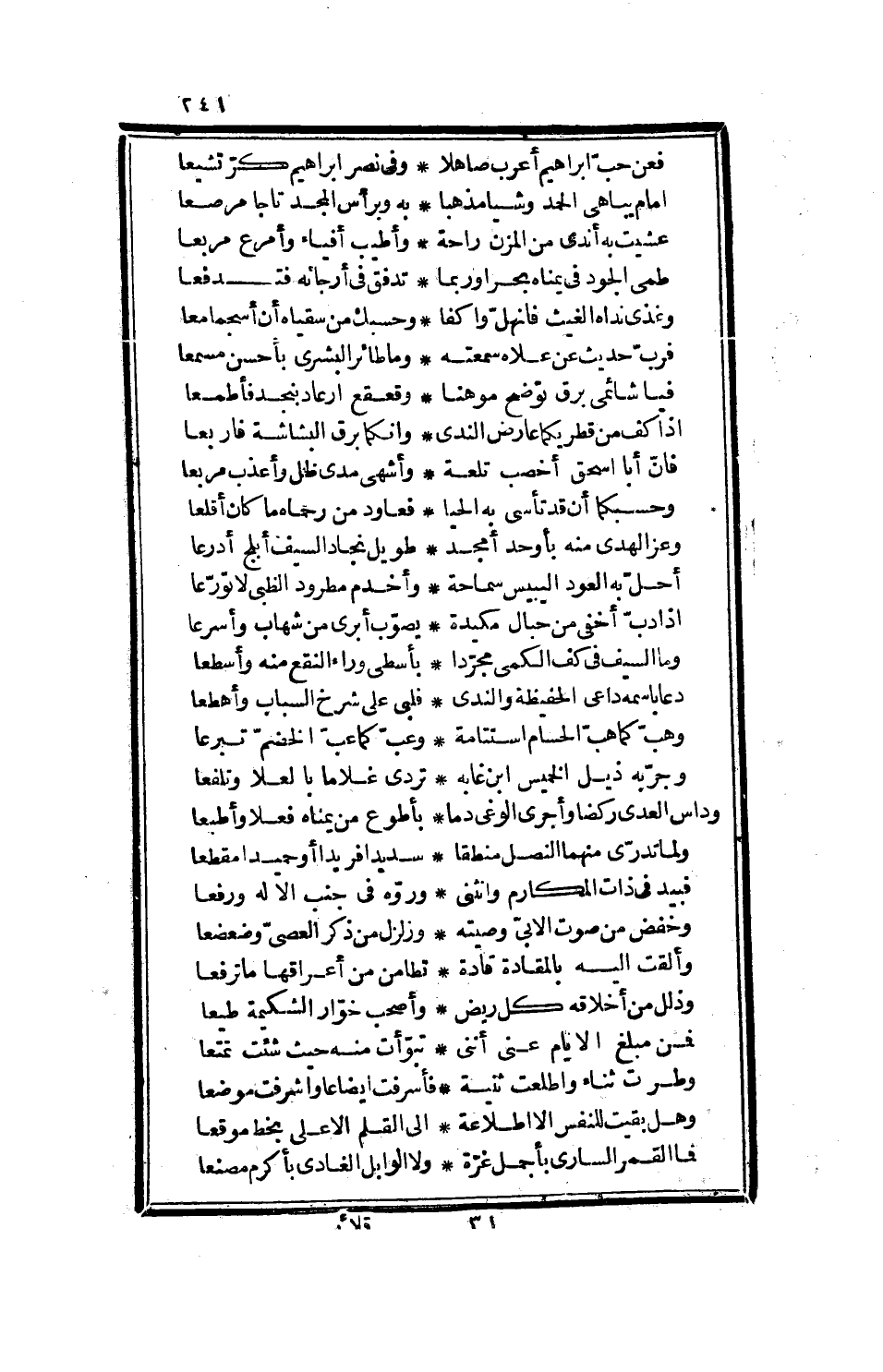 أحد الفحول، البريء من المطروق والمنحول، تفتحت كمآثم رويته عن زهر المعاني، وأبدت قصايده غرض المداري لها المعاني، فما يبين في معناه انحلال معاقد، ولا تلين قناته لغمز ناقد، مع أدب منساب، تفرّع من دوحتي روية واكتساب وكان بينه وبن ابن عمار ذمام تذكره لما أسهل، وأعاد معلماً ذلك المجهل، فأعلقه بدولته، وألحقه بجملته، ونفّقه بعد الكساد، وطوّقه من استخلاصه ما أغاظ به الحساد، وكان يعتقد تقدمه، ويعقد بنواصي الشعراء قدمه، إلا أنه مع تمييزه له بالأخطاء، وتجويره إياه عند الاقتضاء، لم يوصله عندالمعتمد إلى حظ، ولم ينله إلاكرة لحظ، فمن بديعه الحسن ومطبوعه المستحسن، أنه ركب بأشبيلية زورقاً في النهر الذي لا تدانيه السرات، ولا يضاهيه الفرات، في ليلة تنقبت بظلمتها، ولم يبد وضح في دهمتها، وبين أيديهم شمعتان قد انعكس شعاعهما في اللجة، وزاد في تلك البهجة، فقال مرتجلاً في الحين، [منسرح]