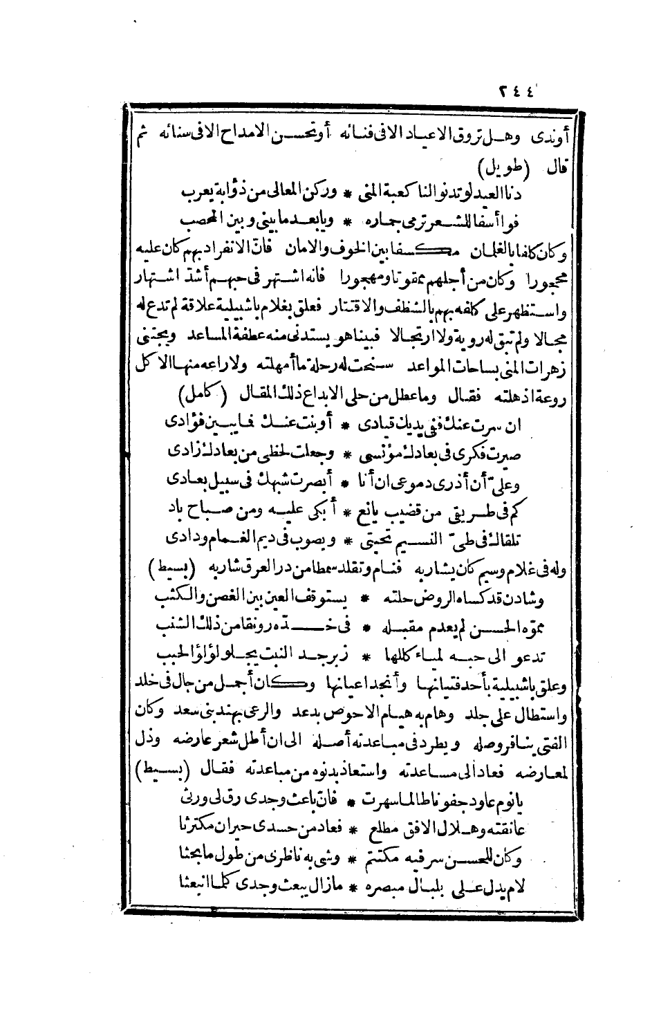 المديد الباع، الفريد الانطباع، الذي ملك للمحاسن مقادا، وغدا له البديع منقادا، أي مقال: ينبئ عن معناه وفصله، وأي أرقال: ينتهي إلى مداه وخصله، وقد يشذ فما يشرك، ويبد فما يدرك، رقى إلى ما أحبه، وقطع سنام كل معارض وجبه، وتقلد النظام حساماً لا تنبو مضاربه، وولد غرضاً لا يدانيه أحد ولا يقاربه، فبدا سابقاً، وغدا لفظه لمعناه مطابقا، وقد أثبت له ما تبصر له لمعا وشروقا، وتهصر غصنه ناعما وريقا، كان المعتمد على الله يميزه بالتقريب، ويستغرب ما يأتي به من النادر والغريب، ويوليه أنعاما وإحسانا، ويريد الزمان كله إذارا ونيسانا، فلما نبت صعاده، وأعوزه من دهره إسعاده، ورُحل به إلى المغرب، وحل فيه محل النازح المغترب، وغدرته الأيام غدر أهل خراسان لقتيبة، وفي له أبو بكر بالرحلة إليه وفاء الظعينة لعتيبة، وتراسلا هناك