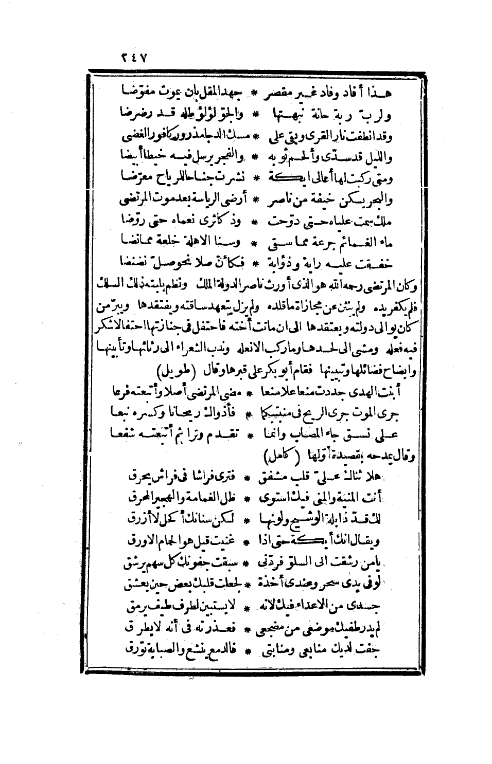 وسعي به ناصر الدولة وبغي، ونبذ حق نباهته والغي، فلم يرع انقطاعه، ولا جوزي إحسانه ولا إبداعه، وهجر هجر الجرب، وأقام مقام الحائر المضطرب،