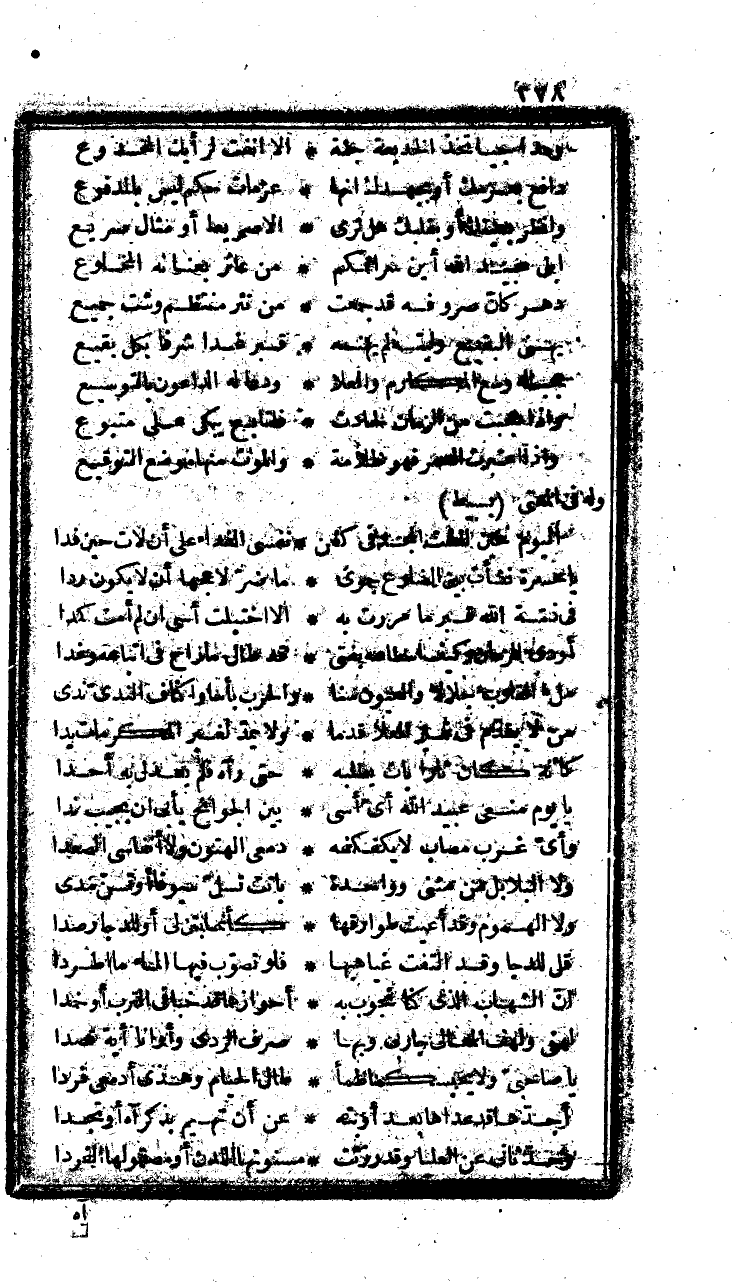 رافع راية القريض، وصاحب أية التصريح فيه والتعريض، أقام شرائعه، واظهر روائعه، وصار عصية طايعه، إذا نظم أزرى بنظم العقود، وأتى بأحسن من رقم البرود، ضفا عليه حرمانه، وما صفا له زمانه، فصار قعيد صهوات، وقاطع فلوات، مع توهم لا يظفره بأمان، وتقلب ذهن كواهي الجمان، وقد أثبت من قوله ما يستحلى، ويتزين به الزمان ويتحلى فمن ذلك قوله: بسيط