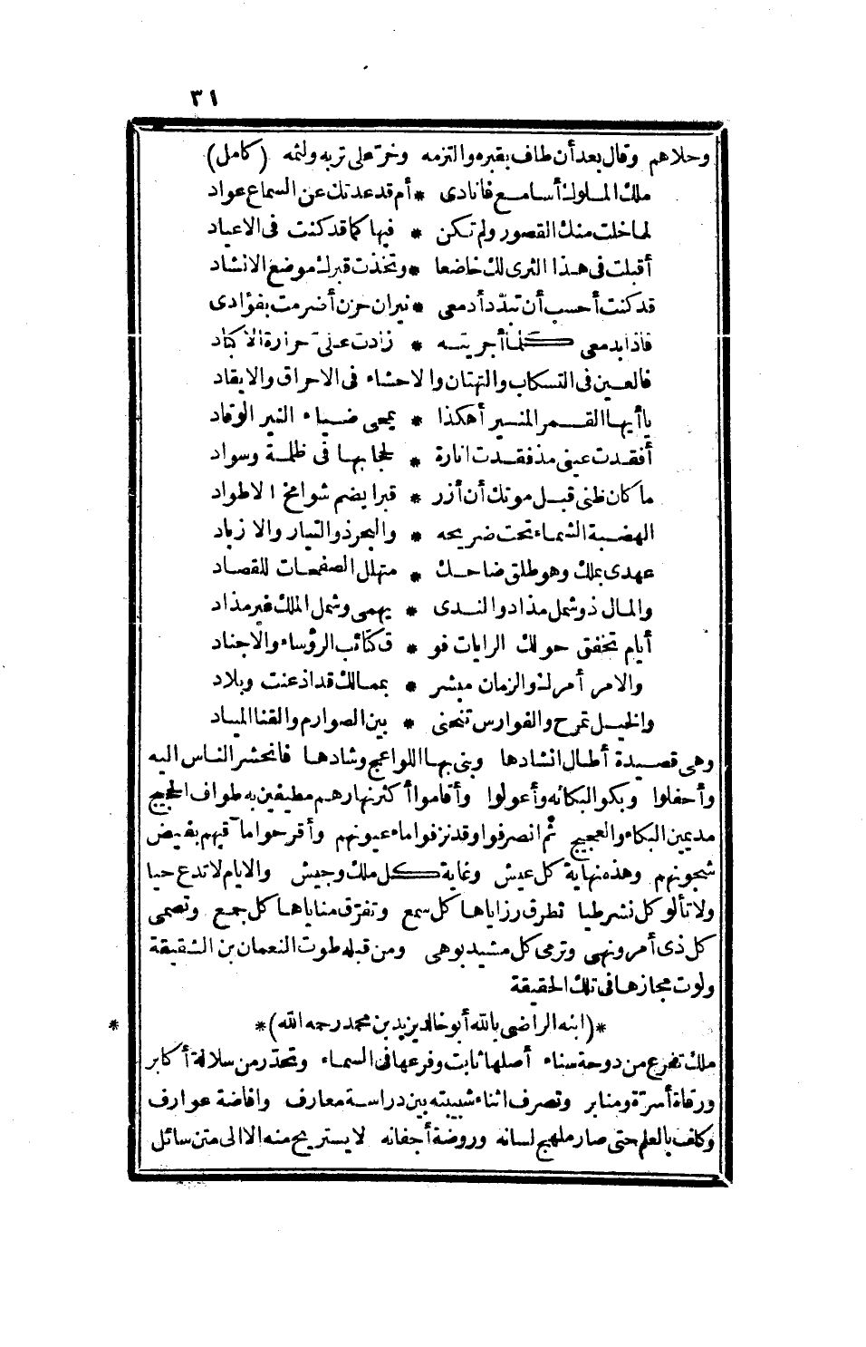 وهي قصيدة أطال أنشادها، وبنى بها اللواعج وشادها، فانحشر الناس إليه وأحفلوا، وبكوا لبكائه وأعولوا، وأقاموا أكثر نهارهم مطيفين به طواف الحجيج، مديمين البكاء والعجيج، ثم انصرفوا وقد نزفوا ماء عيونهم، وأقرحوا مأقيهم بفيض شؤنهم، وهذه نهاية كل عيش، وغاية كل ملك وجيش، والأيام لا تدع حيا، ولا تألوا كل نشر طيا، تطرق رزاياها كل سمع، وتفرق مناياها كل جمع، وتصمي كل ذي أمر ونهي، وترمي كل مشيد بوهي، ومن قبله طوت النمعان ابن الشقيقة، ولوت مجازها في تلك الحقيقة.