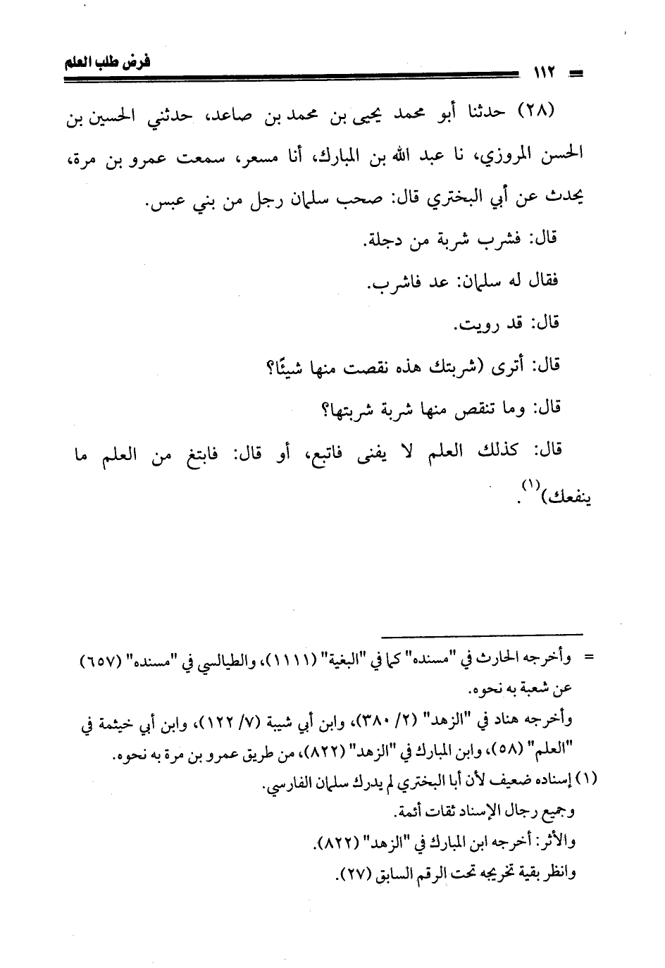 قال: كذلك العلم لا يفنى فاتبع، أو قال: فابتغ من العلم ما ينفعك).
