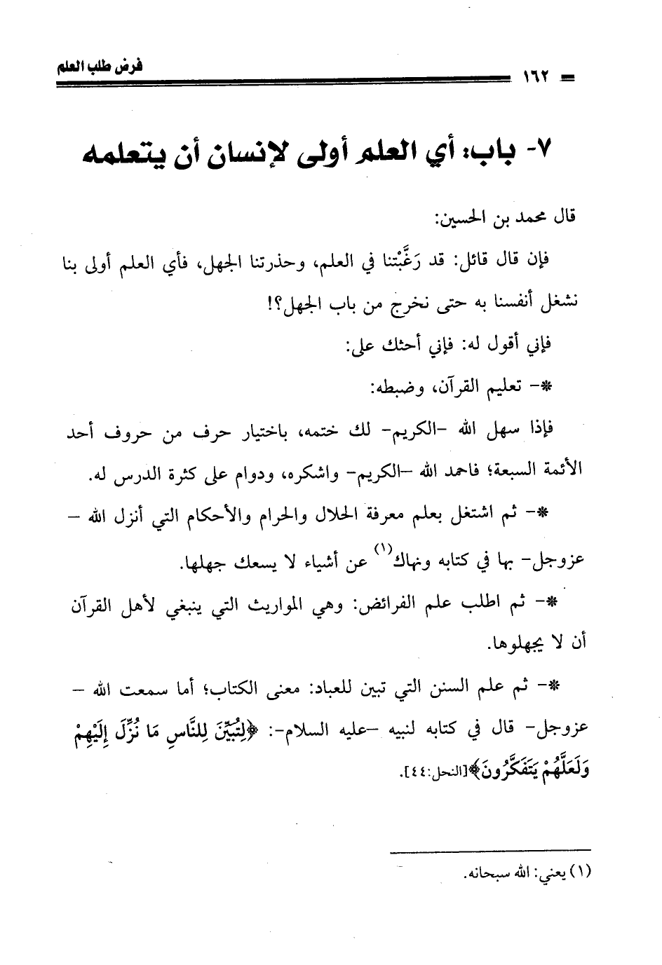 [7] باب: أي العلم أولى لإنسان أن يتعلمه