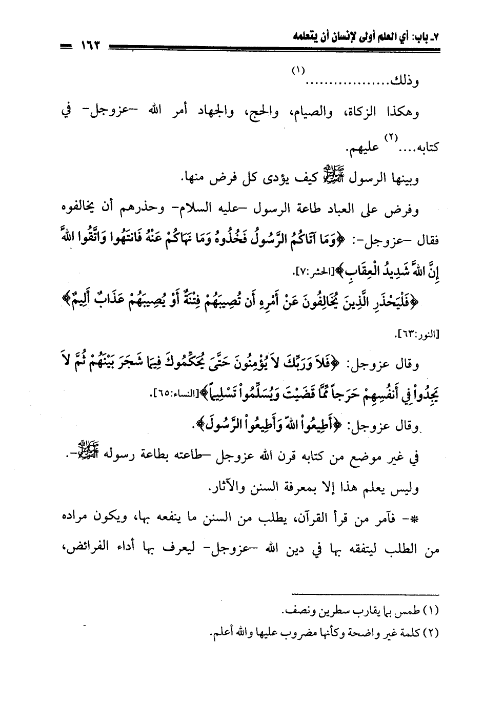 *- فآمر من قرأ القرآن، يطلب من السنن ما ينفعه بها، ويكون مراده من الطلب ليتفقه بها في دين الله –عز وجل- ليعرف بها أداء الفرائض،