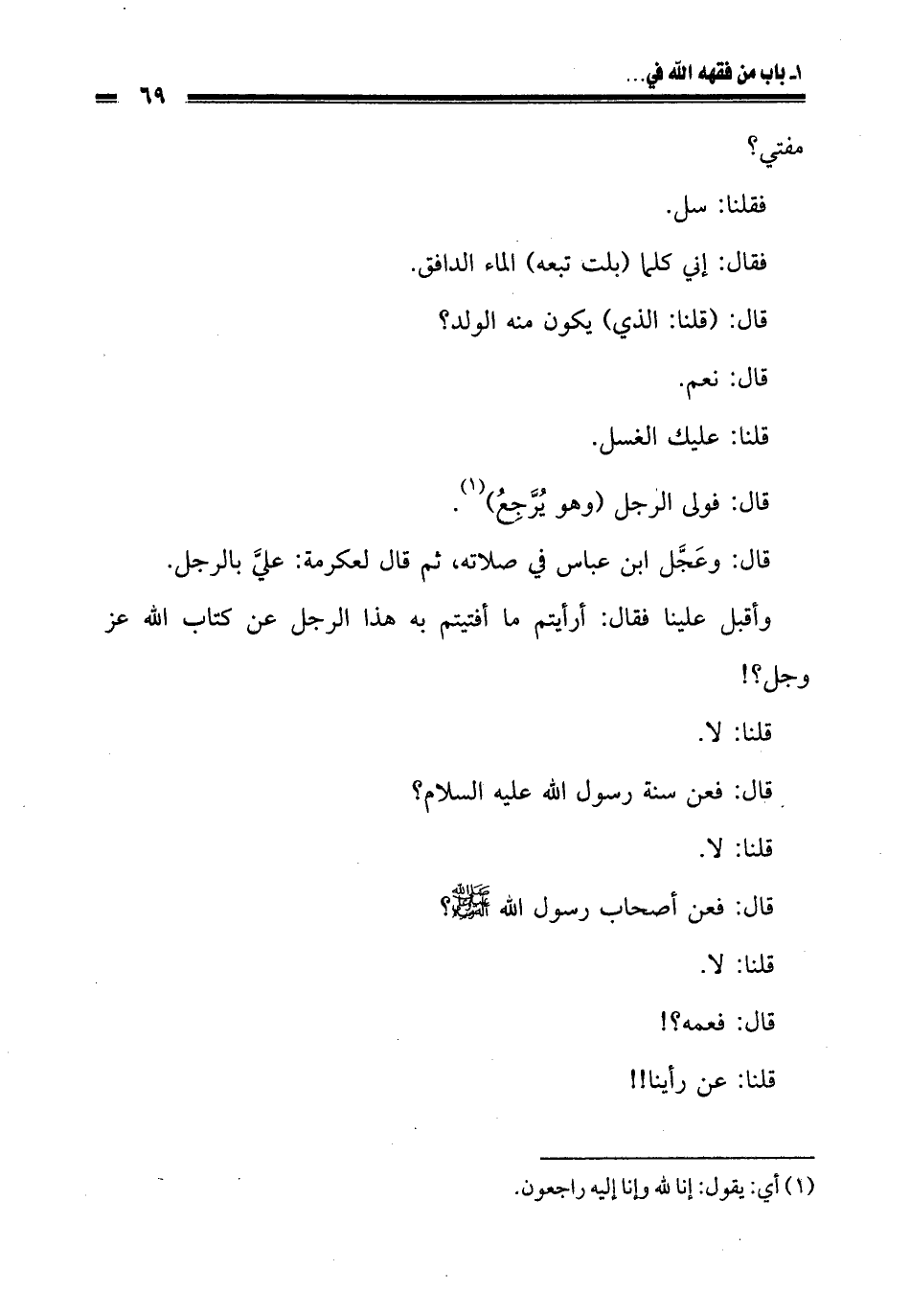 وأقبل علينا فقال: أرأيتم ما أفتيتم به هذا الرجل عن كتاب الله عز وجل؟!