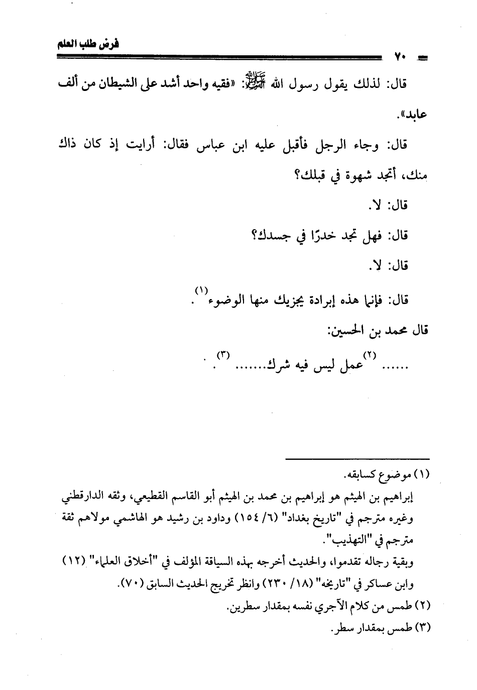 قال: لذلك يقول رسول الله صلى الله عليه وسلم: «فقيه واحد أشد على الشيطان من ألف عابد».