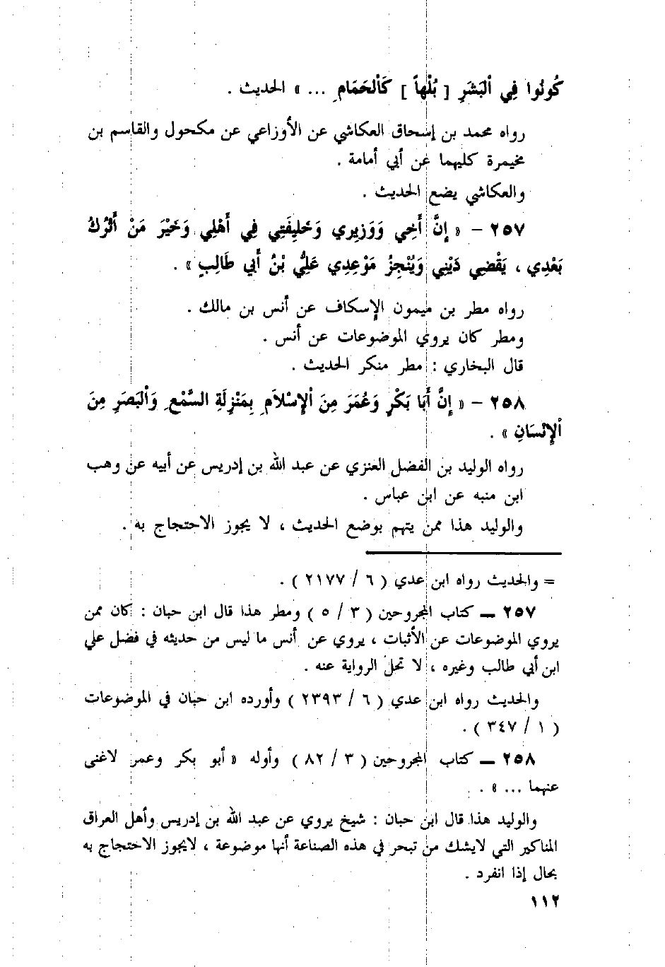 258 - «إِنَّ أَبَا بَكْرٍ وَعُمَرَ مِنَ الإِسْلامِ بِمَنْزِلَةِ السَّمْعِ وَالْبَصَرِ مِنَ الإِنْسَانِ» .