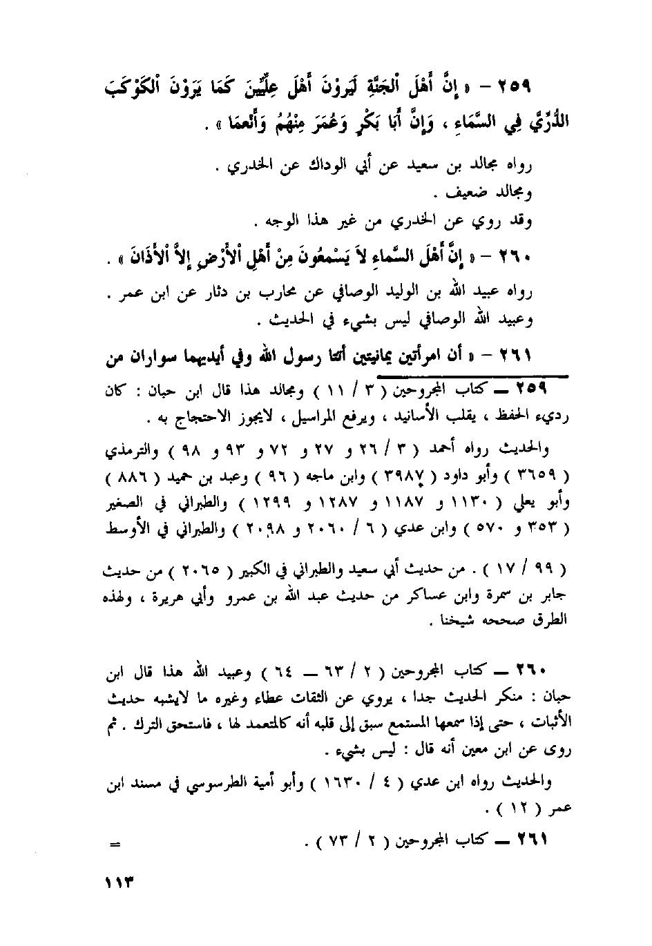 259 - «إِنَّ أَهْلَ الْجَنَّةِ لَيَرَوْنَ أَهْلَ عِلِّيِّينَ كَمَا يَرَوْنَ الْكَوْكَبَ الدُّرِّيَّ فِي السَّمَاءِ، وَإِنَّ أَبَا بَكْرٍ وَعُمَرَ مِنْهُمْ وَأَنْعَمَا» .