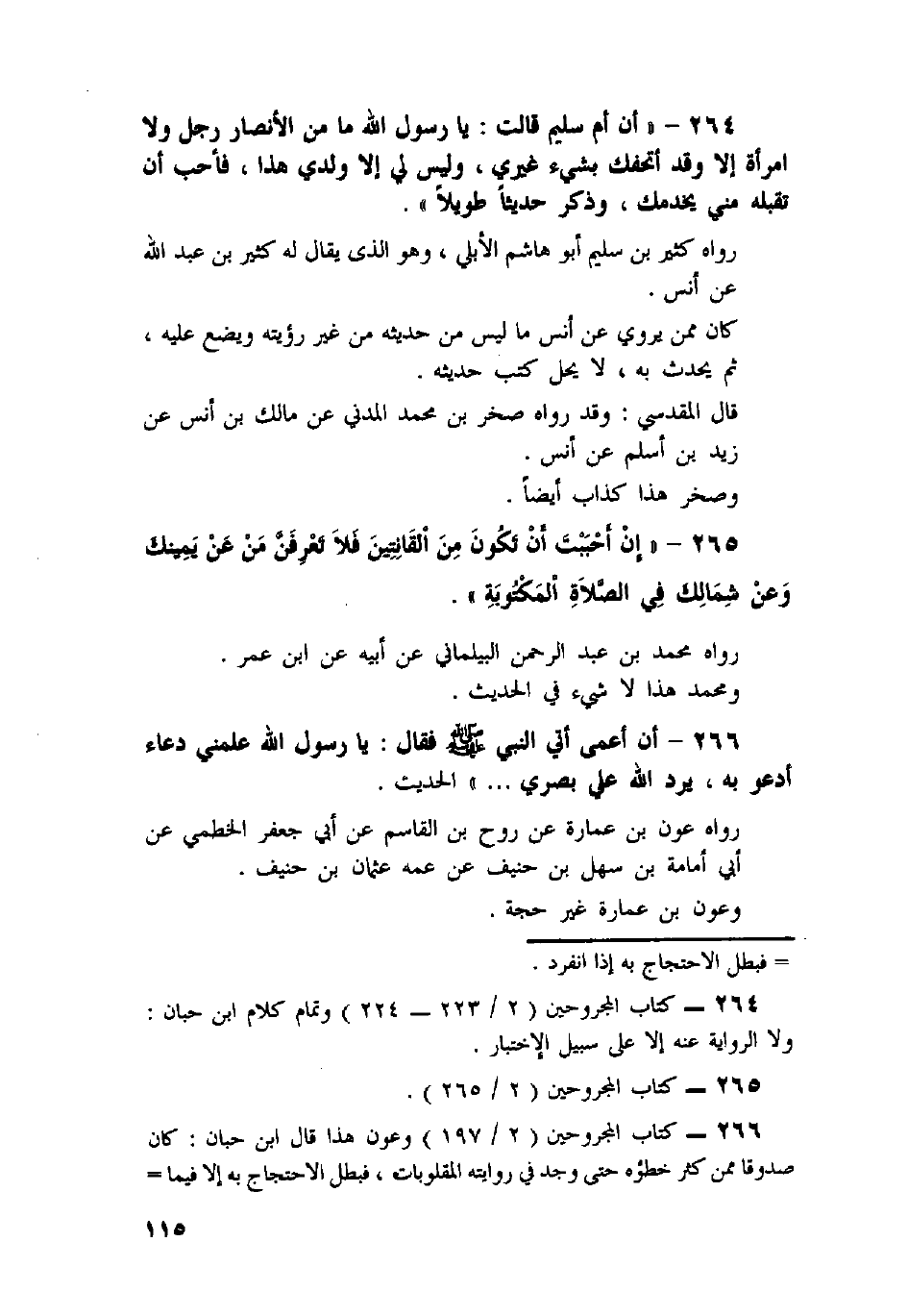 266 - أَنَّ أَعْمَى أَتَى النَّبِيَّ صَلَّى اللَّهُ عَلَيْهِ وَسَلَّمَ فَقَالَ: يَا رَسُولَ اللَّهِ عَلِّمْنِي دُعَاءً أَدْعُو بِهِ، وَيَرُدُّ اللَّهُ عَلَيَّ بَصَرِي. . " الْحَدِيثَ.