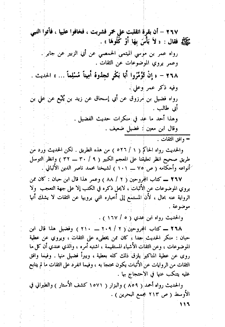 وَعُمَرُ يَرْوِي الْمَوْضُوعَاتِ عَنِ الثِّقَاتِ.