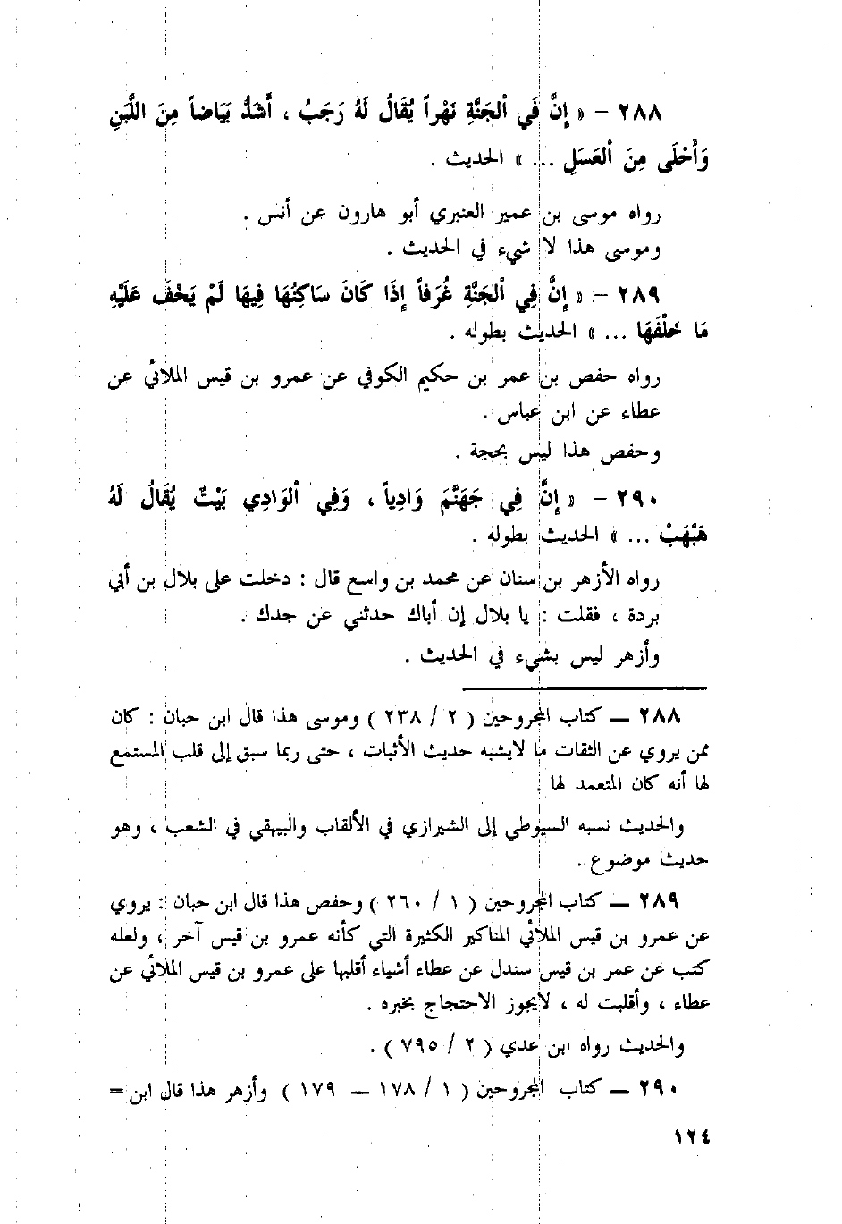 288 - «إِنَّ فِي الْجَنَّةِ نَهَرًا يُقَالُ لَهُ رَجَبٌ، أَشَدُّ بَيَاضًا مِنَ اللَّبَنِ وَأَحْلَى مِنَ الْعَسَلِ. . .» الْحَدِيثَ.